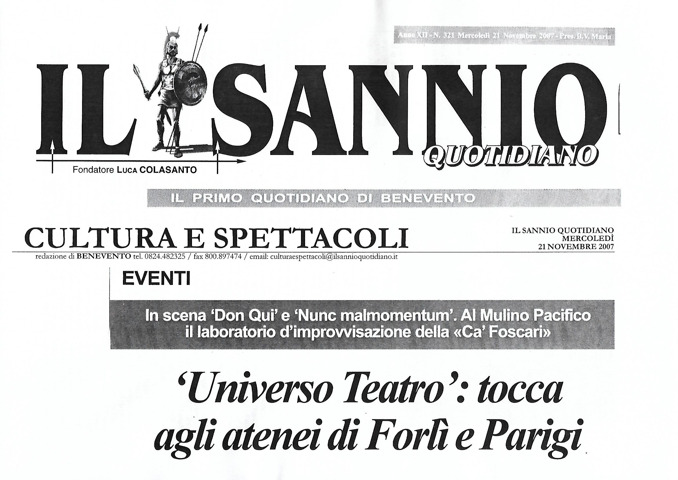 Opera presentata a novembre del 2007 al Teatro Comunale di Benevento con il titolo Nunc, Mal Momentum per il 1° Festival Internazionale di Teatro Universitario di Benevento Universo Teatro promosso dal direttore artistico Ugo Gregoretti, presente allo spettacolo con Judith Malina, che ha molto apprezzato lo spettacolo, considerandolo uno dei più interessanti della rassegna.